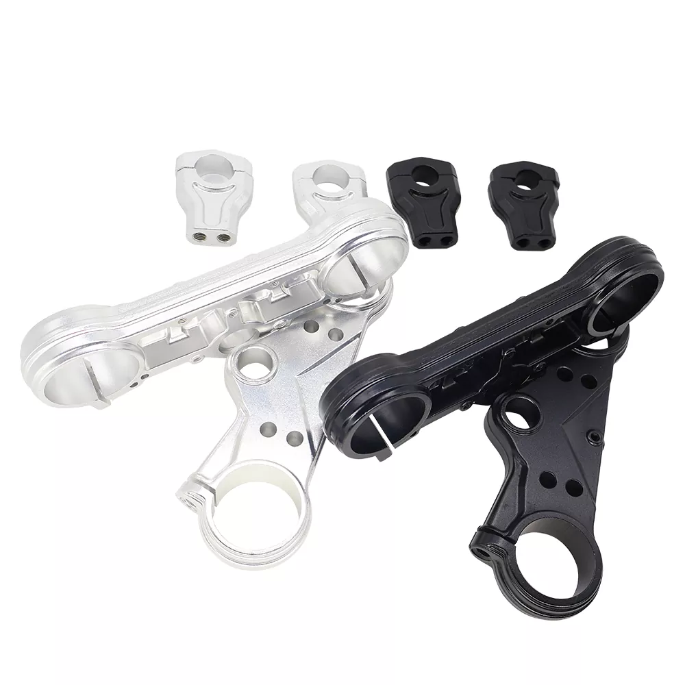 బహుళ కోణాల నుండి ప్రదర్శించబడిన, ఎలక్ట్రిక్ బైక్ నకిలీ ట్రిపుల్ క్లాంప్ తప్పనిసరిగా కలిగి ఉండాలి. సొగసైన నలుపు మరియు సొగసైన వెండిలో లభిస్తుంది, మీరు మీ బైక్కు సరిపోయేలా సరైన రంగును ఎంచుకోవచ్చు. ఈ అనుకూలీకరణ మీ రైడ్ రూపాన్ని మెరుగుపరచడమే కాకుండా అసాధారణమైన మన్నిక మరియు పనితీరును నిర్ధారిస్తుంది. ఈ స్టైలిష్ మరియు నమ్మదగిన భాగంతో మీ బైకింగ్ అనుభవాన్ని మెరుగుపరచుకోండి!