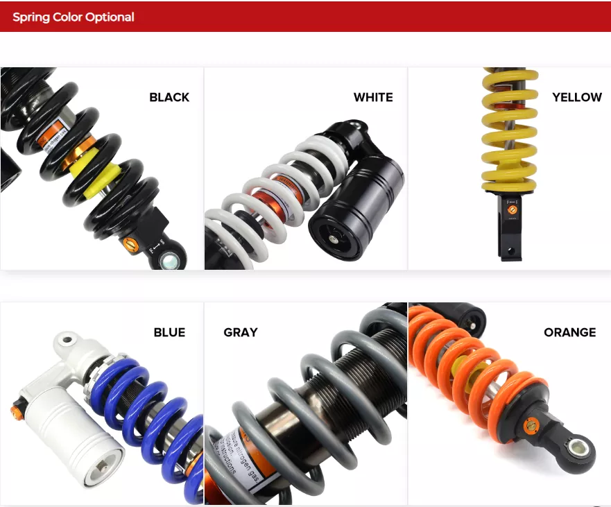 సజాతీయ ఉత్పత్తుల వలె కాకుండా, పర్పుల్ 340lbs 280mm పిట్ బైక్ మోటార్సైకిల్ షాక్ అబ్జార్బర్ వ్యక్తిగతీకరించిన మరియు బ్రాండెడ్ అవసరాలను తీర్చడానికి పూర్తి-డైమెన్షనల్ అనుకూలీకరణ సేవను అందిస్తుంది: